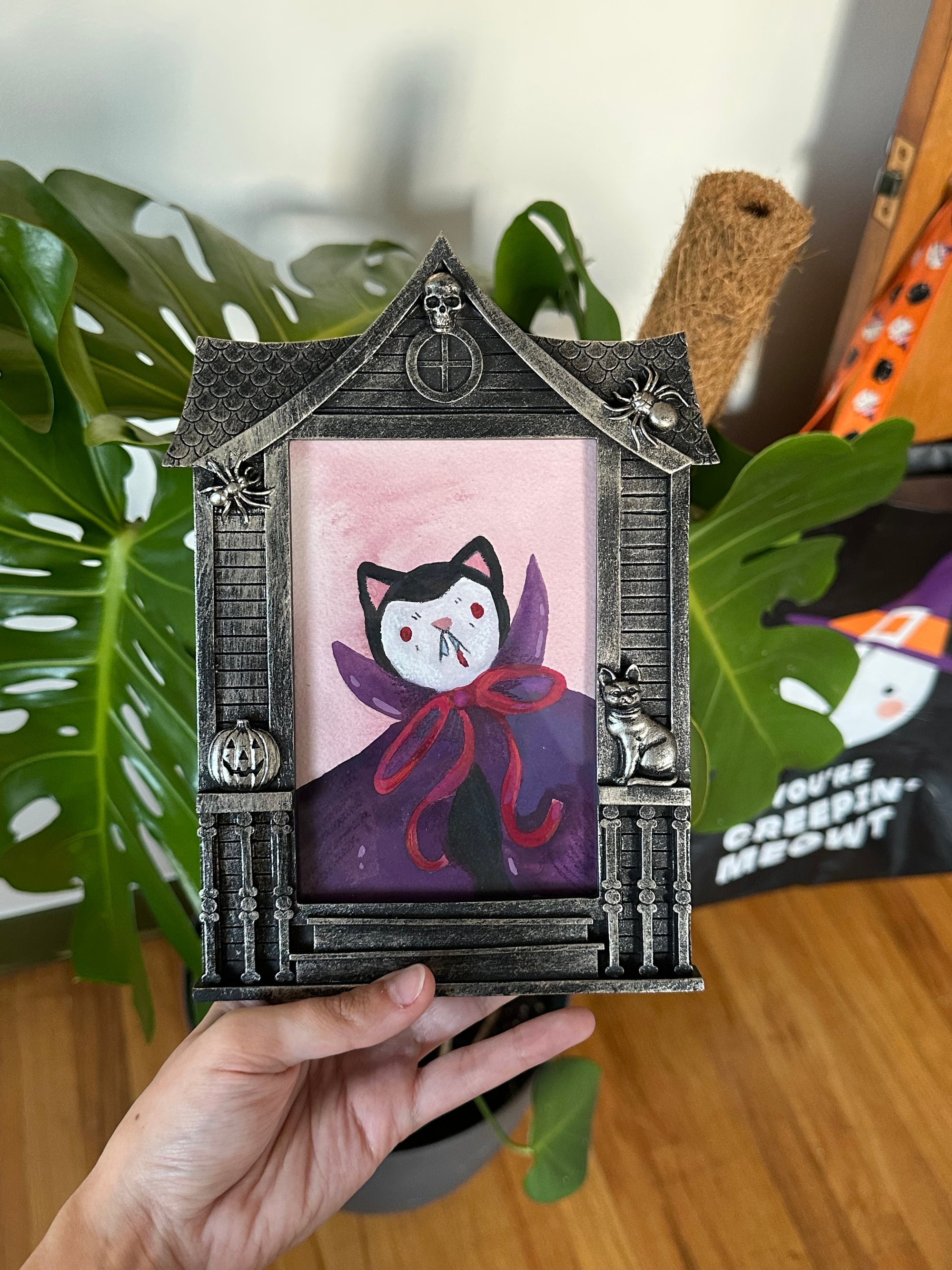 Dracula Cat Framed Original Painting