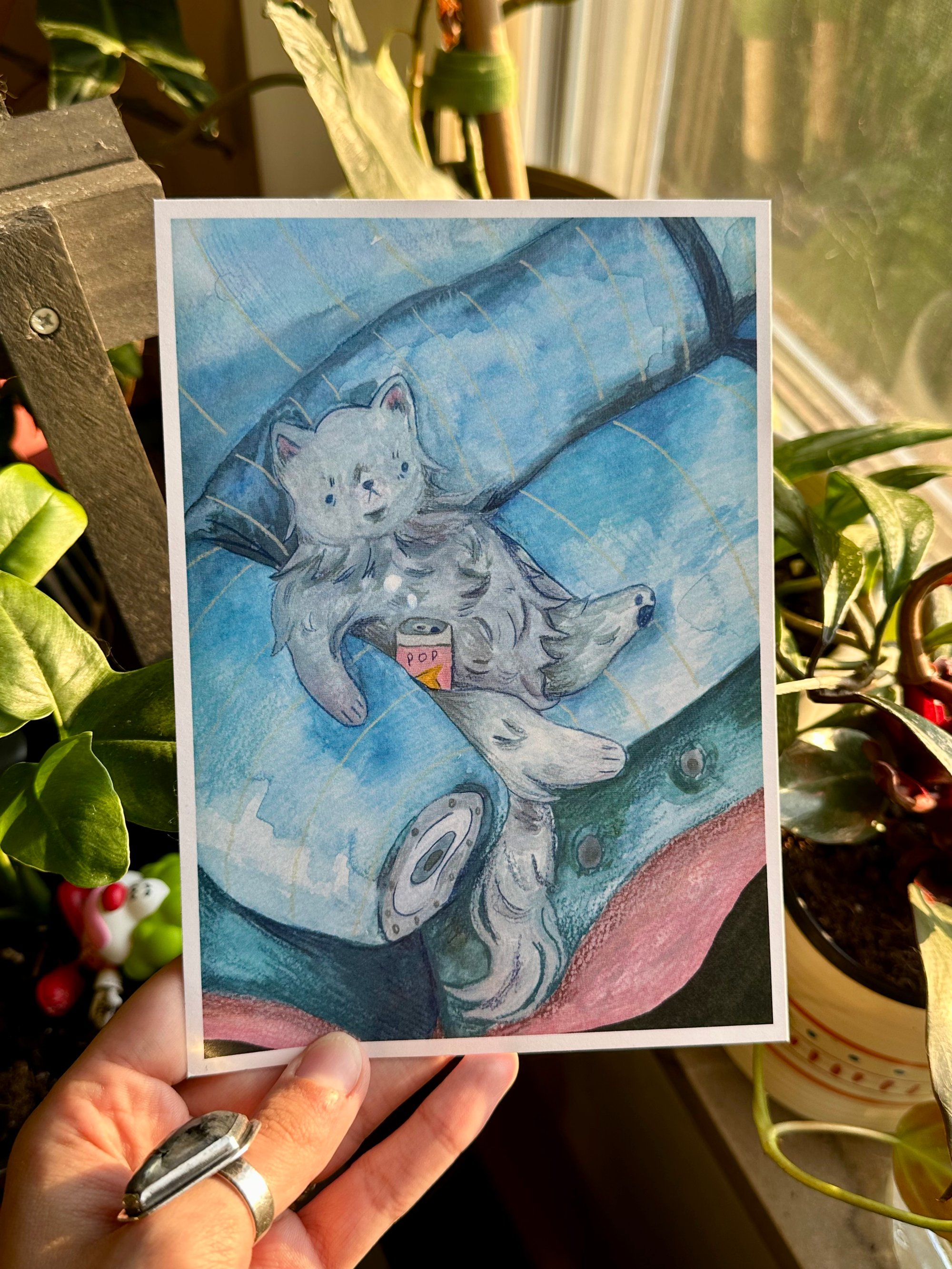 ☆ 5 inch by 7 inch post card print of my cat Merlin who sits like a father. ☆